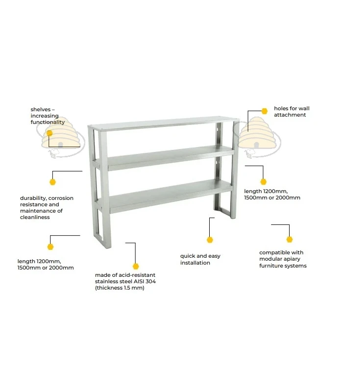 Rallonge pour étendre votre table de travail avec des étagères. Cet élément d’extension est fabriqué en acier inoxydable AISI 304 résistant aux acides (épaisseur 1,5 mm), résistant à l’humidité, à la corrosion et aux désinfectants. Fixez facilement cet élément au mur grâce aux ouvertures de montage mural. Rangez vos outils et accessoires à portée de main, sans perdre d’espace sur le plan de travail.