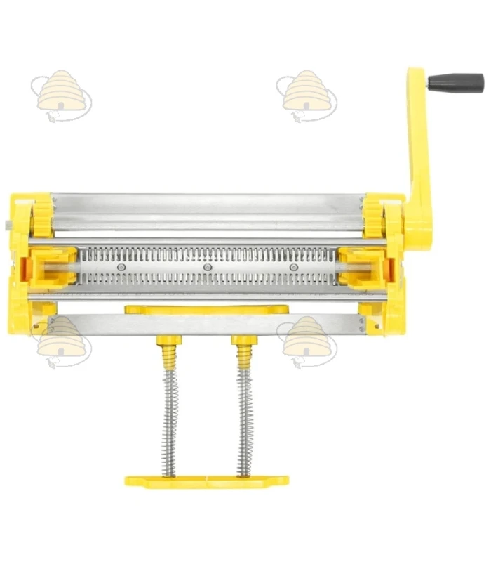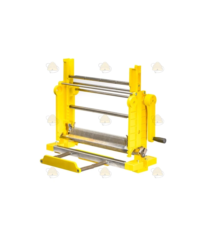 Machine à désoperculer les cadres Simplex manuellement. Cette machine à désoperculer facilite grandement la désoperculation. Cet appareil accélère considérablement le processus de désoperculation. L’appareil fonctionne selon le principe d’une fourche à désoperculer et enlève environ 3 mm de la couche superficielle sur les deux faces du cadre.
