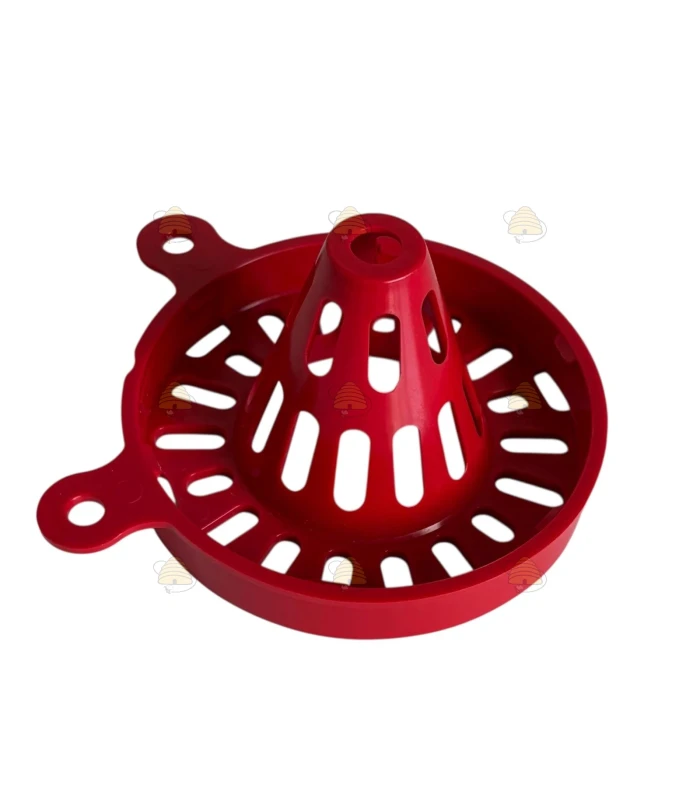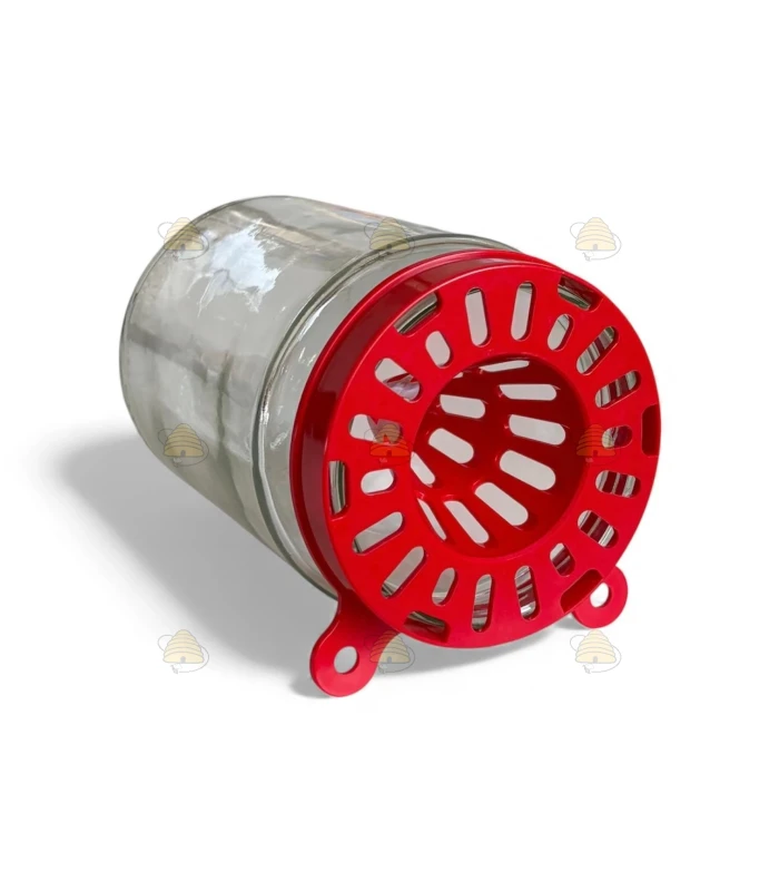 Piège à frelons asiatiques, horizontal, rouge, conçu pour être vissé sur un pot (en verre ou en plastique) au format TO 82 mm.