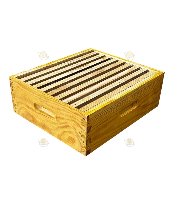 Cette hausse pour ruche Dadant Blatt est imprégnée d’huile de lin et livrée avec 9 cadres de hausse à rainure. Vous pouvez bien sûr utiliser aussi des cadres de hausse sans rainure. La hausse est également équipée de crémaillères et de bandes lisses qui maintiennent les cadres bien en place.