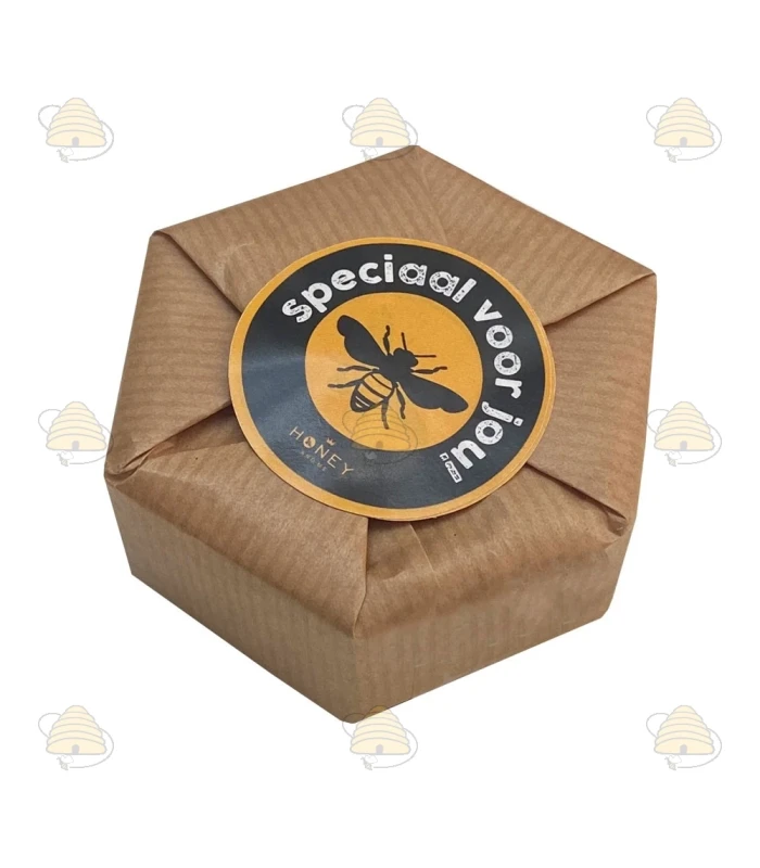 Savon au miel & thym 100 g en forme d’hexagone. Savon végétal au parfum de miel & thym soutenu mais non entêtant. Ces savons durent très longtemps et conservent leur parfum.