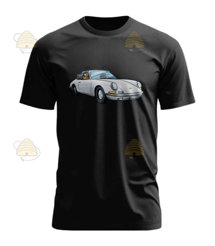T-shirt original avec illustration d’une Porsche blancheavec une abeille au volant ! Confectionné en 100 % coton avec une impression de haute qualité pour un rendu durable et confortable.